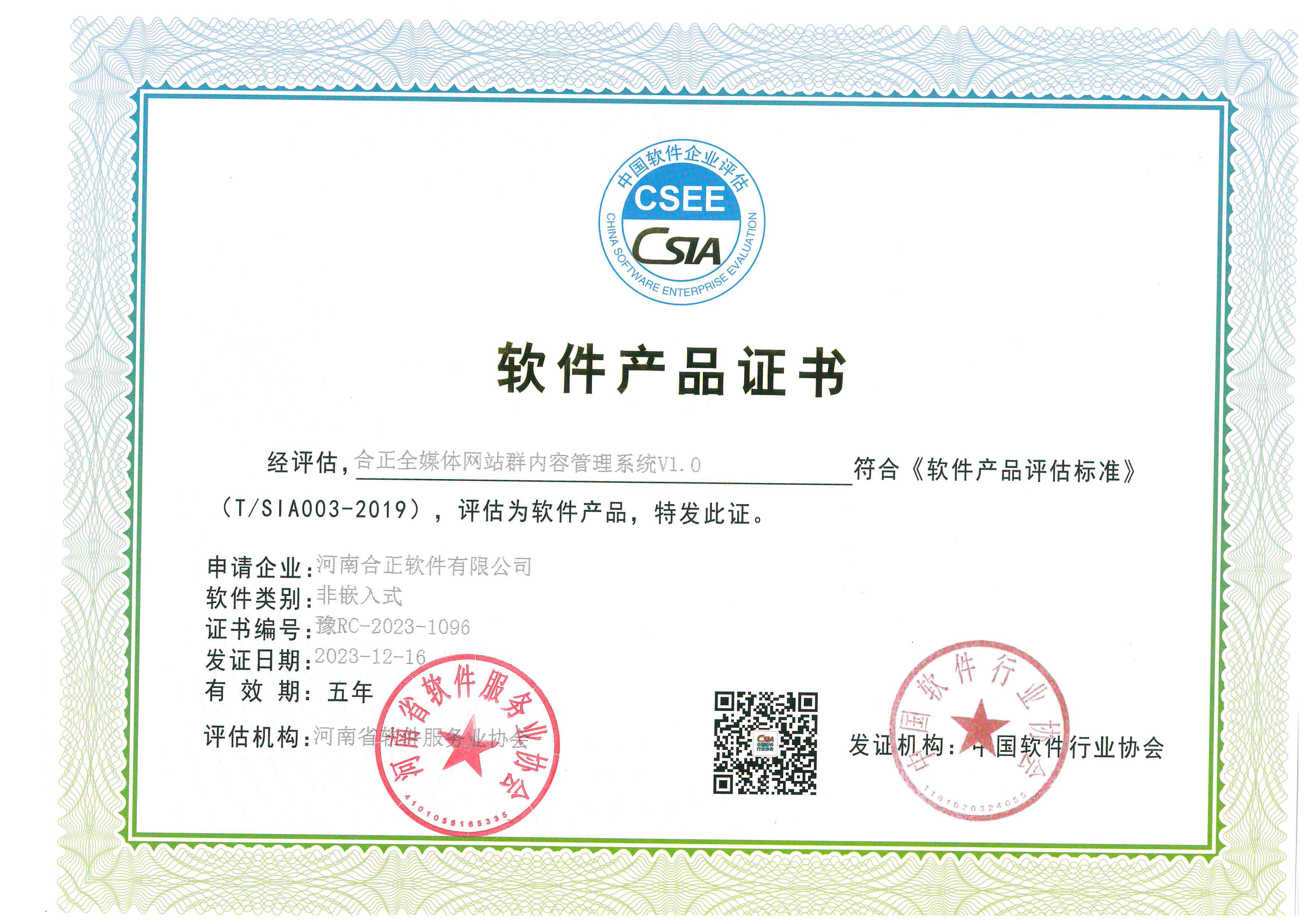 合正再次荣获合正全媒体网站群内容管理系统产品登记证书